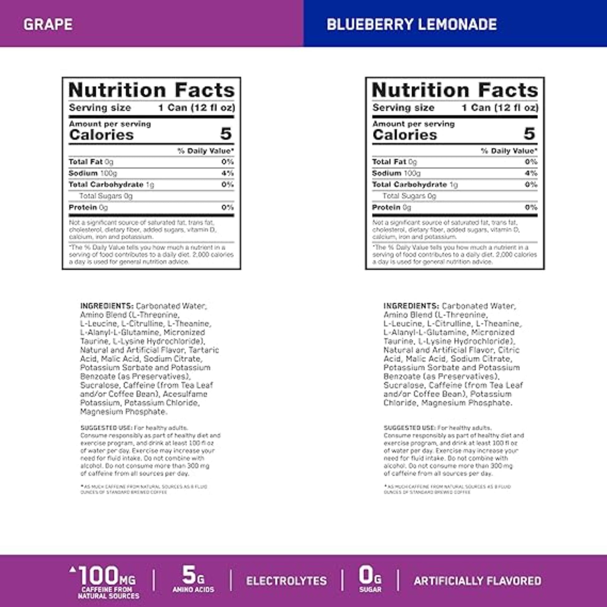 Optimum Nutrition Amino Energy Sparkling Hydration Drink, Electrolytes, Caffeine, Amino Acids, BCAAs, Sugar Free, 12 Fl Oz, Variety Pack of 12 (Packaging May Vary)