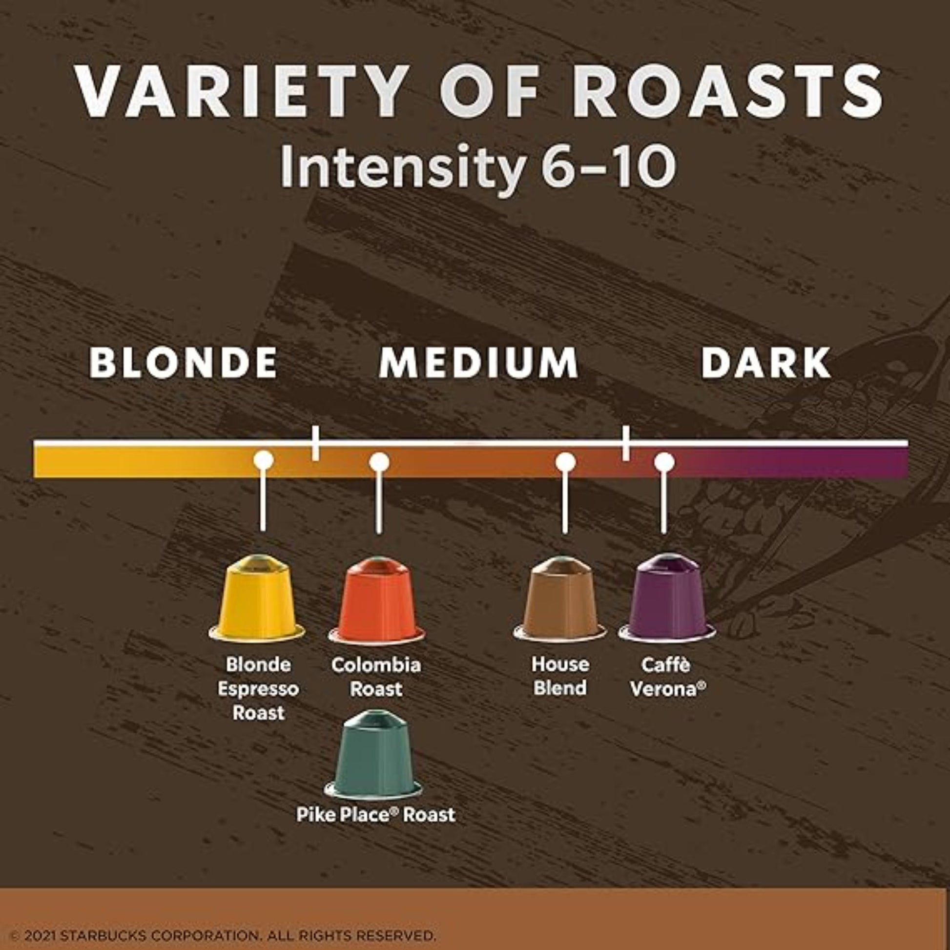Enjoy the same high-quality Starbucks coffee you love, now available as espresso pods made by Nespresso for a rich and convenient at-home brew. This variety coffee pods pack includes five of Starbucks’ most popular roasts -- from the mellow Starbucks Blonde Espresso Roast to the bold and roasty Caffè Verona. Also featured are Pike Place Roast, House Blend, and Single-Origin Colombia, offering a full range of flavors from light to dark. Crafted from recyclable aluminum, each capsule ensures optimal freshness and supports eco-conscious brewing. Compatible with Nespresso OriginalLine machines including Essenza Mini, Pixie, CitiZ, Expert, Lattissima, KitchenAid, and Creatista.